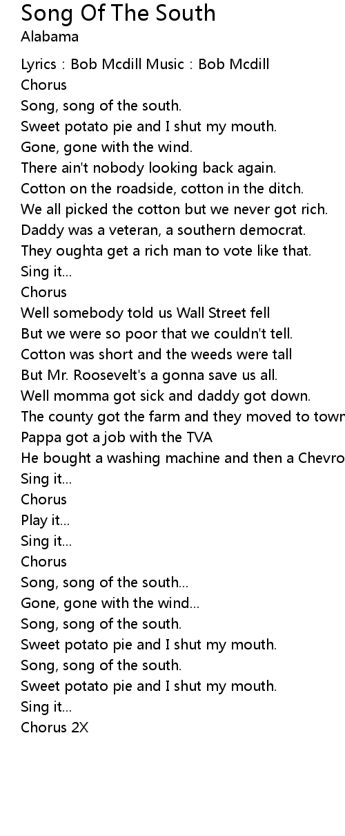 | Song, song of the south. | |