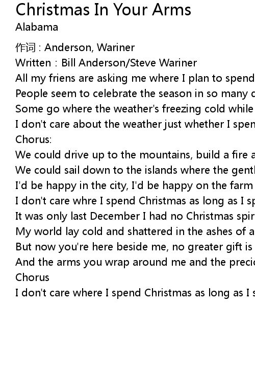 | I don' t care whre I spend Christmas as long as I spend Christmas in your arms | |