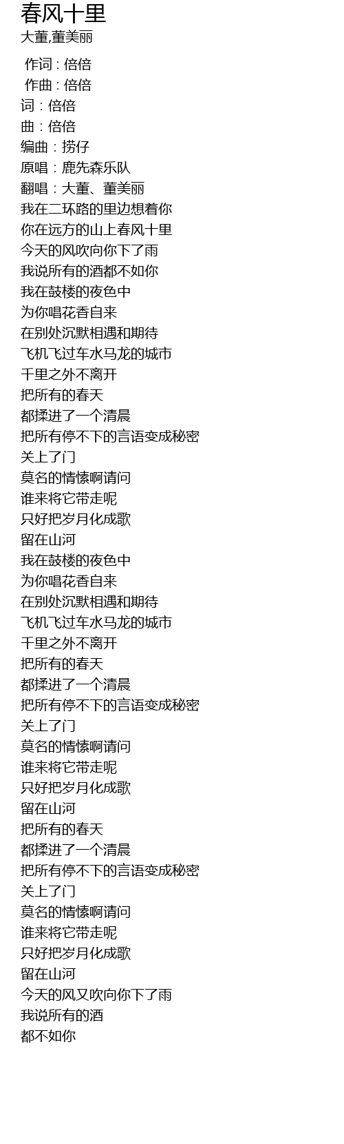 | [00:00.490] | 翻唱:大董、董美丽 |