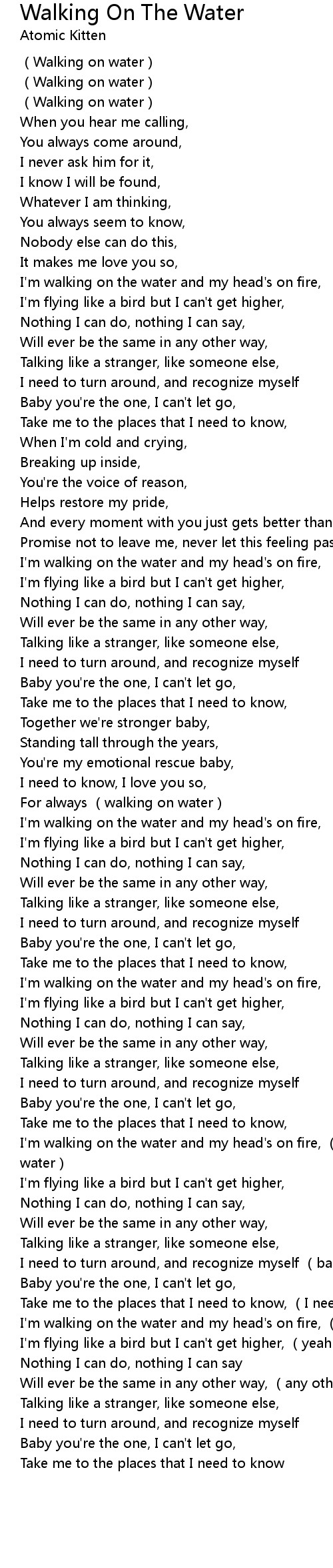 | [03:15.79] | I'm walking on the water and my head's on fire, (walking on the water) |