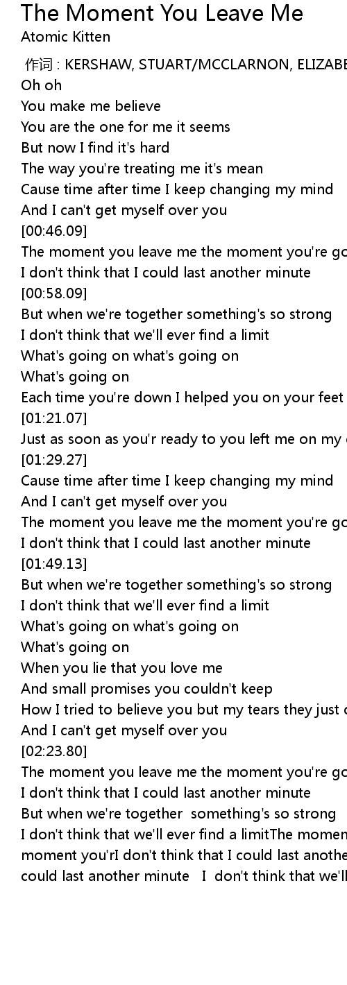 | [00:48.97] | The moment you leave me the moment you' re gone |