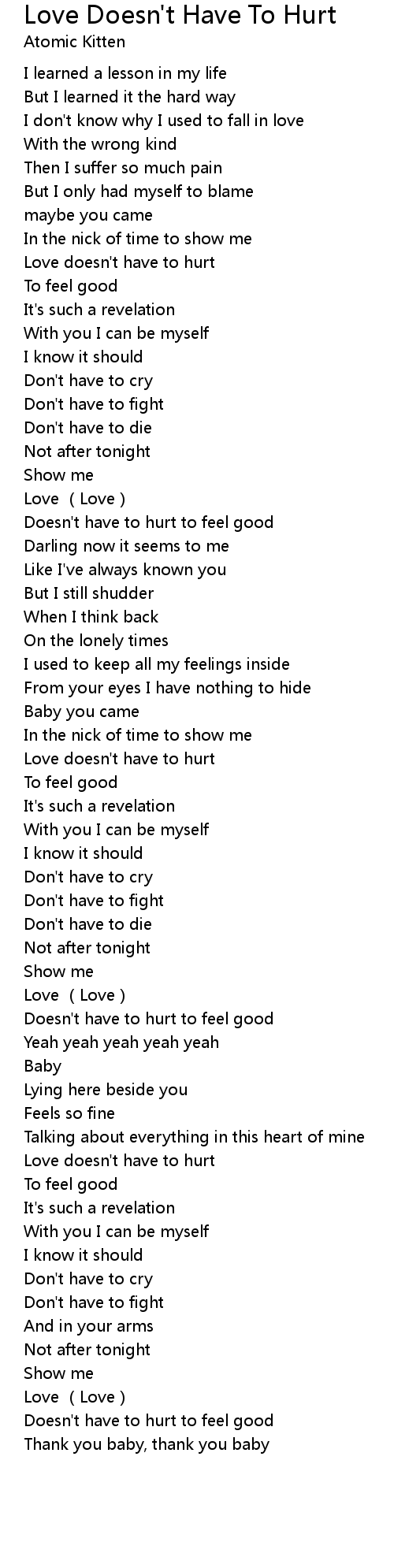 | [02:46.84] | Love doesn' t have to hurt |