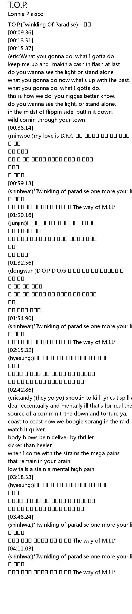 | [00:04.76] | T. O. P. Twinkling Of Paradise |