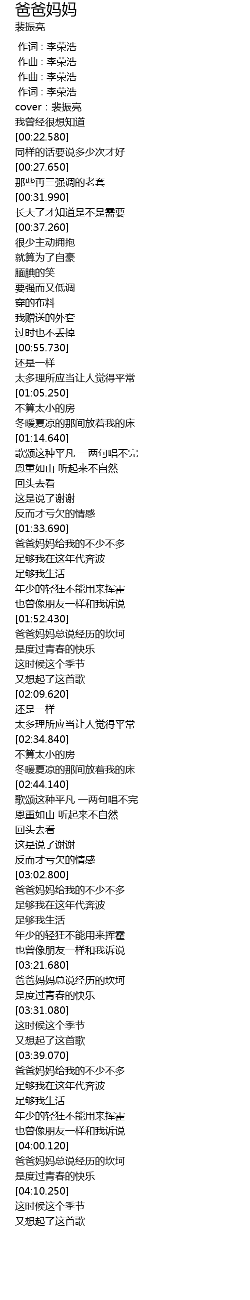 | [03:23.180] | 爸爸妈妈总说经历的坎坷 |
