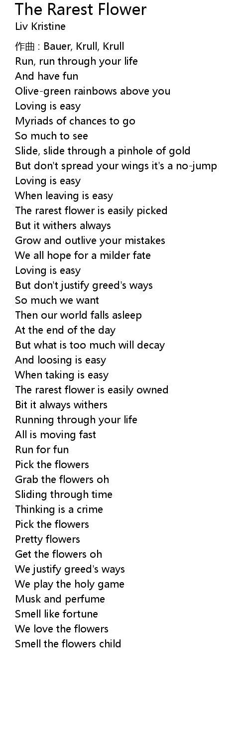 | Song | The Rarest Flower |