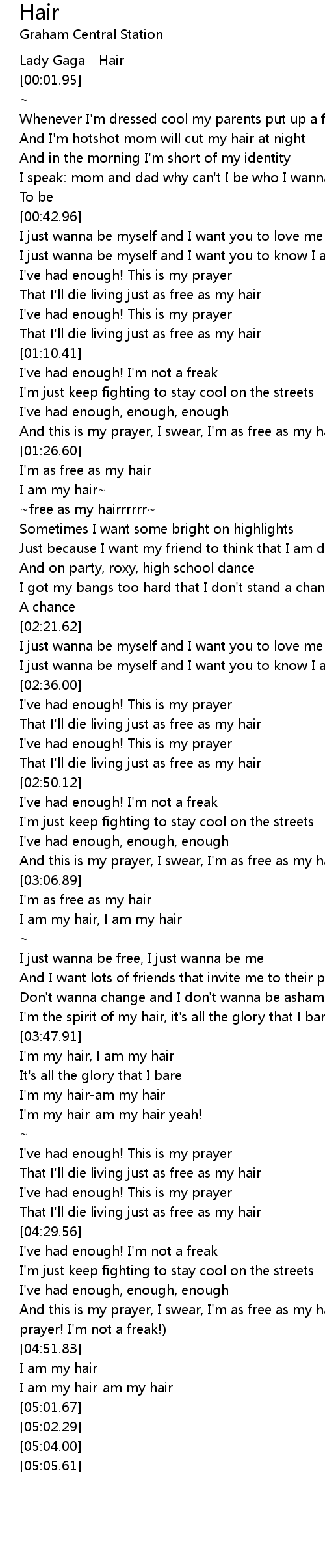 And this is my prayer, I swear, I'm as free as my hair (This is my prayer! I'm not a freak!) |
