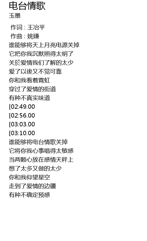| [02:07.00] | 谁能够将电台情歌关掉 |