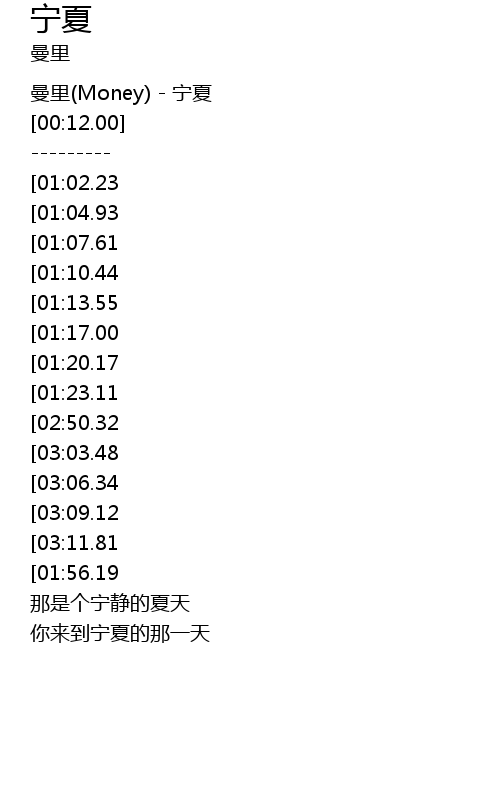 | [00:03.00] | 曼里(Money) - 宁夏 |