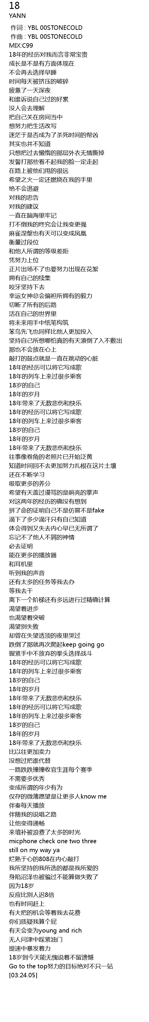| [01:14.75] | 18年的经历可以将它写成歌 |