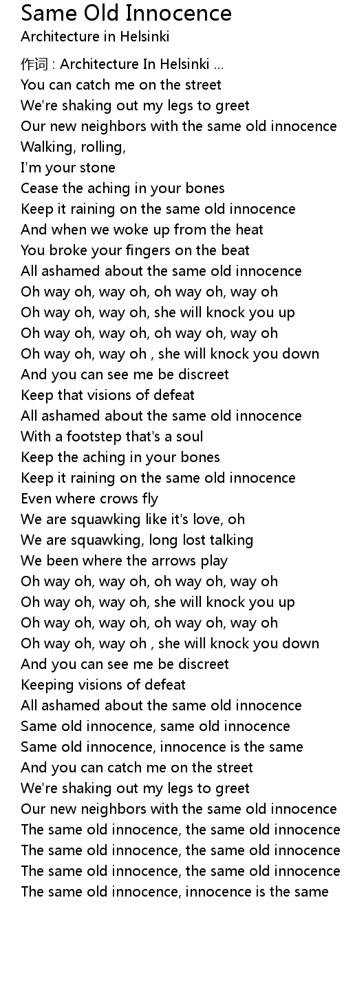 | Same old innocence, same old innocence | |