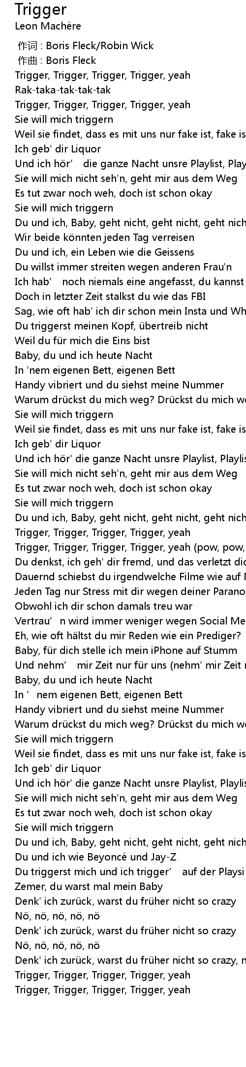 | [02:27.13] | Du triggerst mich und ich trigger' auf der Playsi |