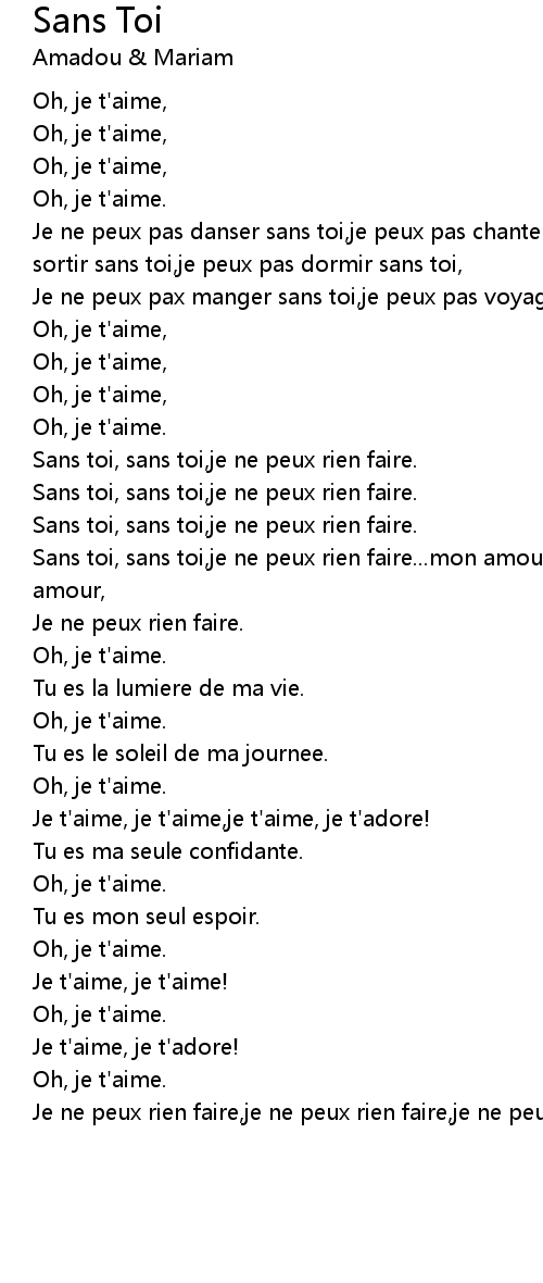 Je ne peux pax manger sans toi,je peux pas voyager sans toi. |