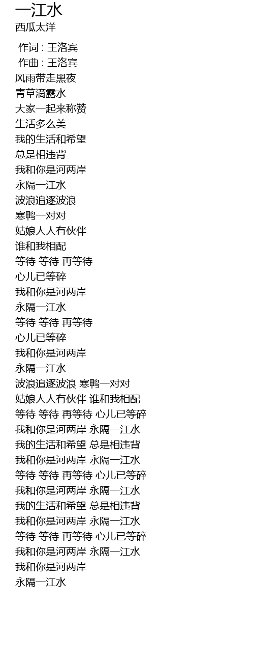 | [02:53.963] | 我和你是河两岸 永隔一江水 |
