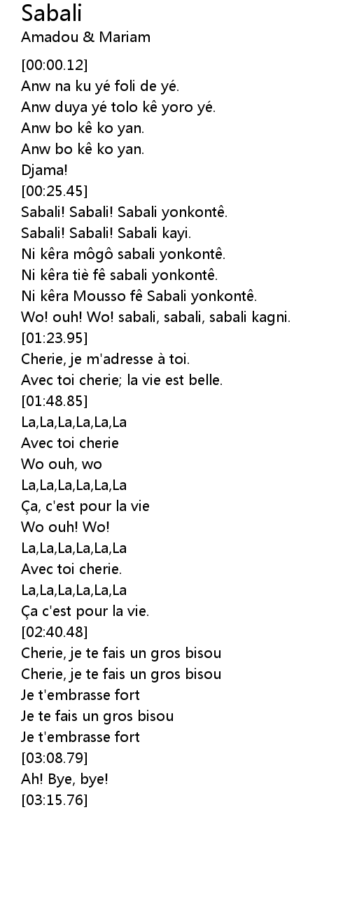 | [00:38.08] | Sabali! Sabali! Sabali yonkontê. |