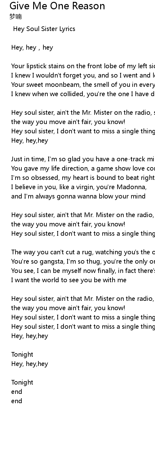 | Hey Soul Sister Lyrics | |