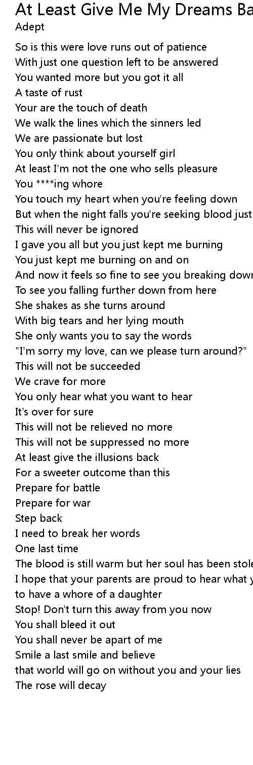 Song At Least Give Me My Dreams Back You Negligent Whore