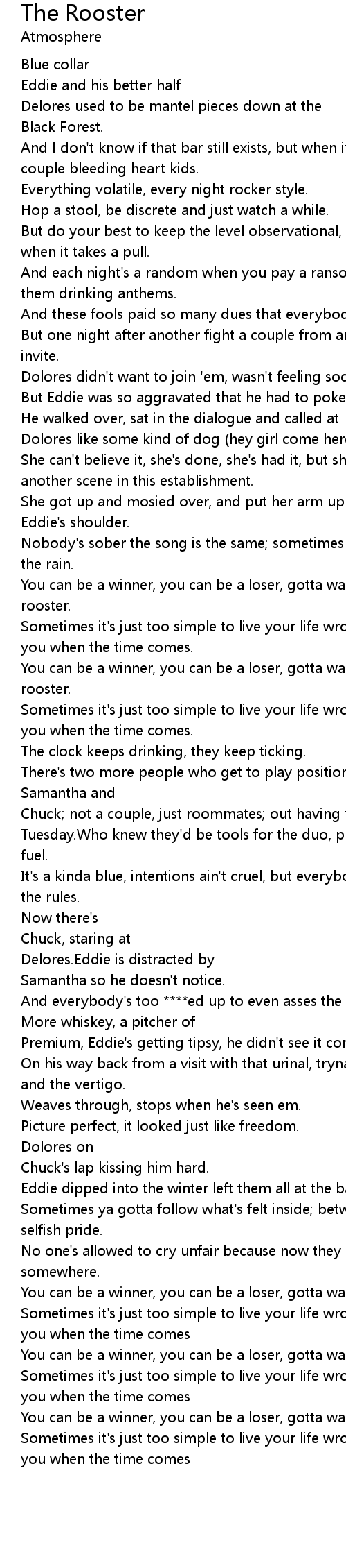 You can be a winner, you can be a loser, gotta wake up when you hear the rooster |