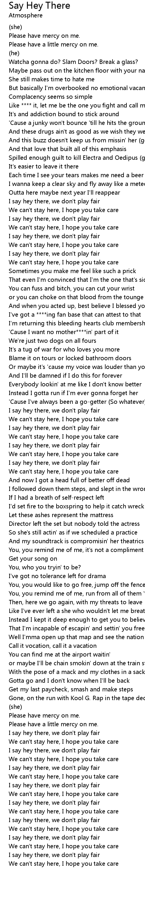 I say hey there, we don't play fair |