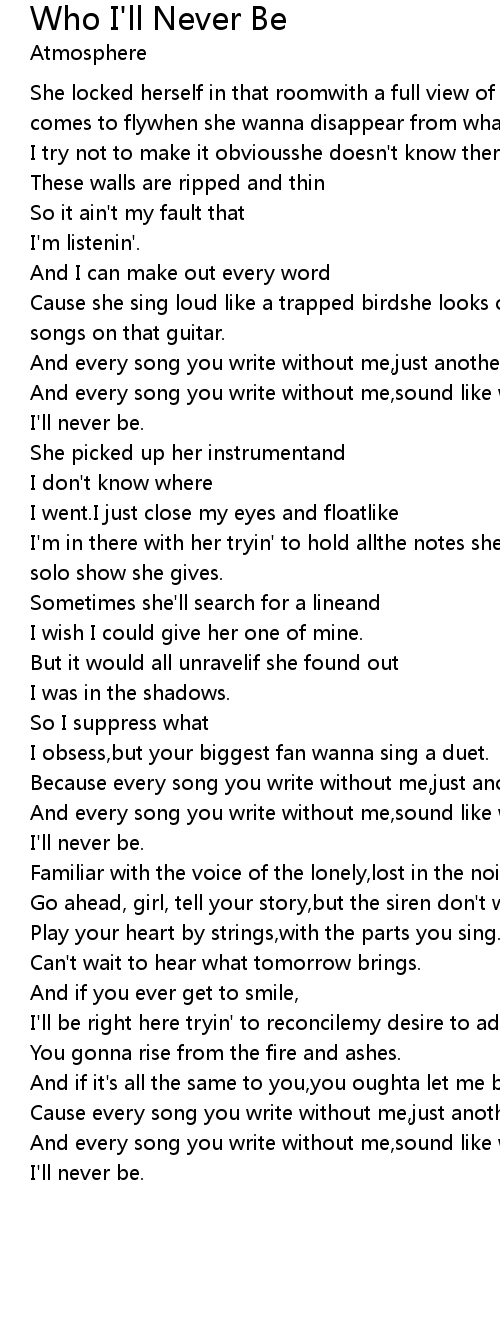 I'll be right here tryin' to reconcilemy desire to admire your sadness.