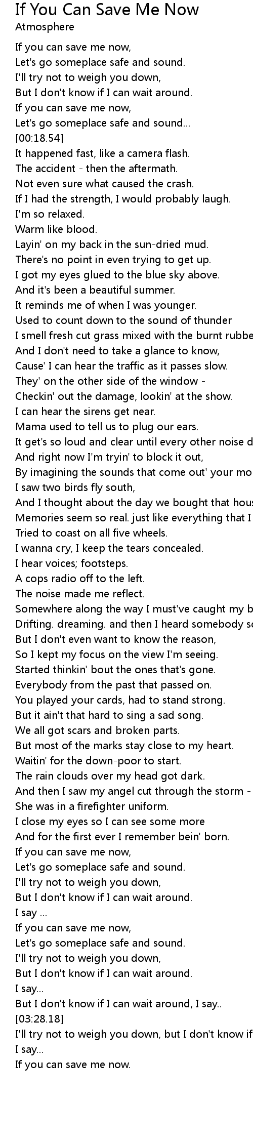 If You Can Save Me Now Lyrics