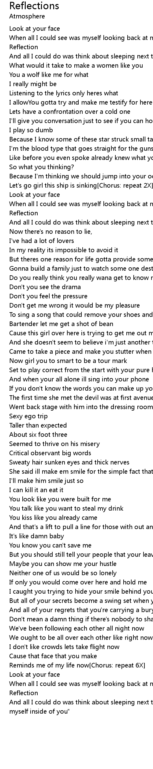 Reminds me of my life now[Chorus: repeat 6X] |