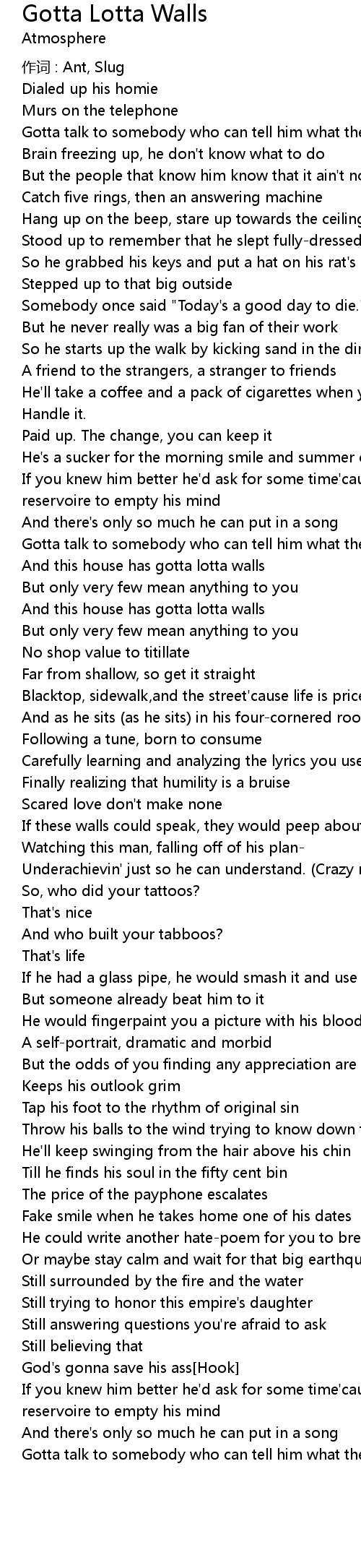 | Gotta talk to somebody who can tell him what the hell is wrong[Hook 2X] | |