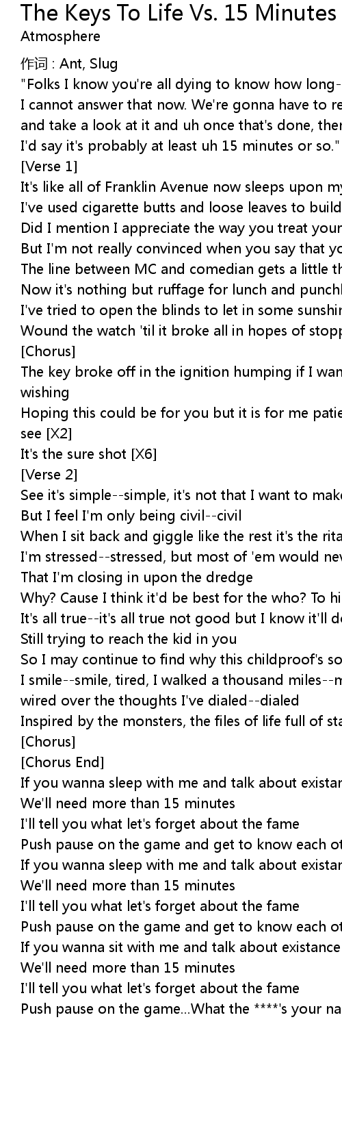 | Song | The Keys To Life Vs. 15 Minutes Of Fame |