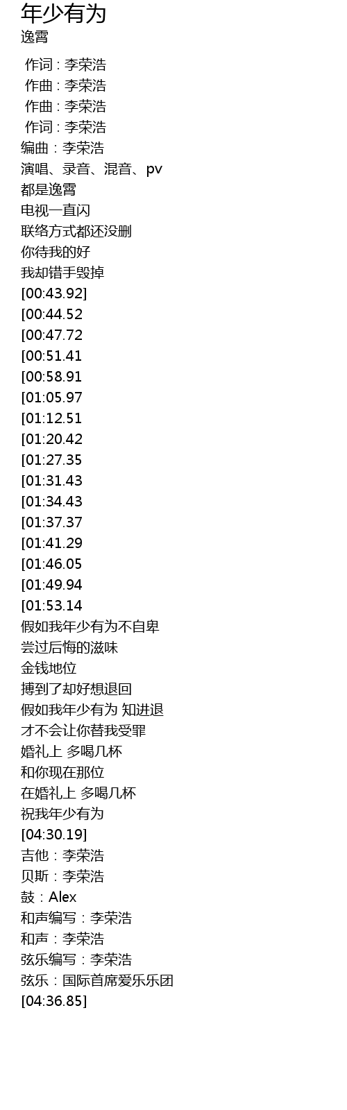 | [04:34.41] | xián yuè biān xiě: lǐ róng hào |