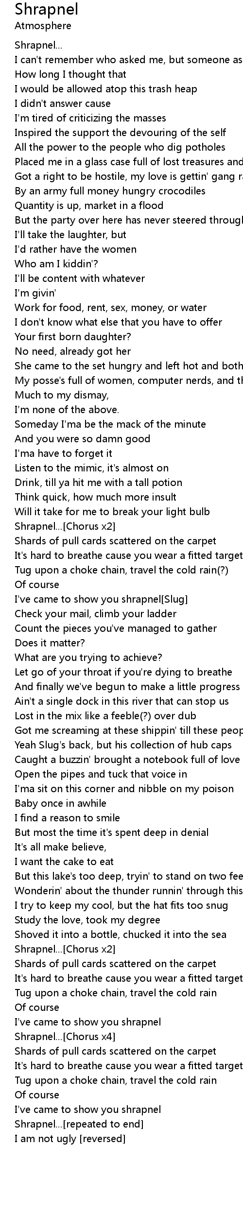 Shrapnel...[Chorus x2] |