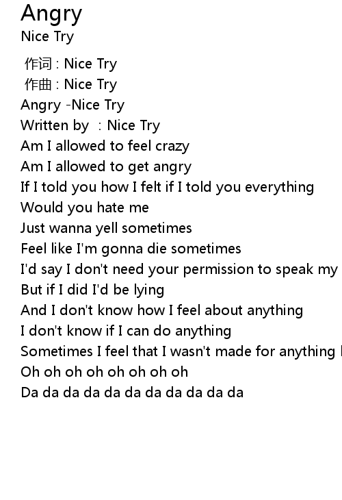 | [00:00.386] | Angry Nice Try |