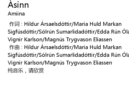 | [00:01.000] | zuo qu : Hildur Á rsaelsdo ttir Maria Huld Markan Sigfu sdo ttir So lru n Sumarlidado ttir Edda Ru n Ó lafsdo ttir Gudmundur Vignir Karlson Magnu s Trygvason Eliassen |