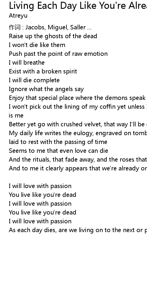 | Song | Living Each Day Like You're Already Dead |