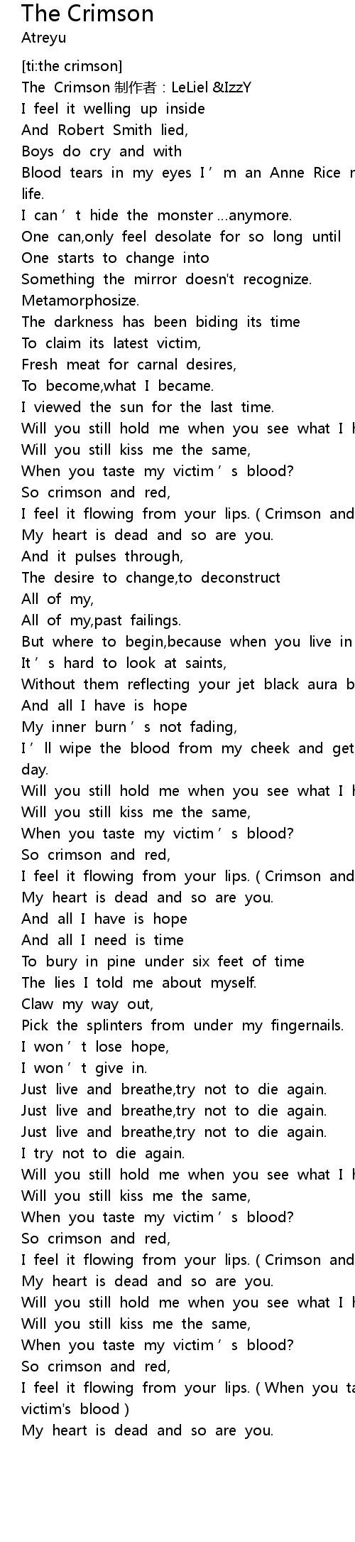 | [03:47.26] | I feel it flowing from your lips.(When you taste my victim's blood) |