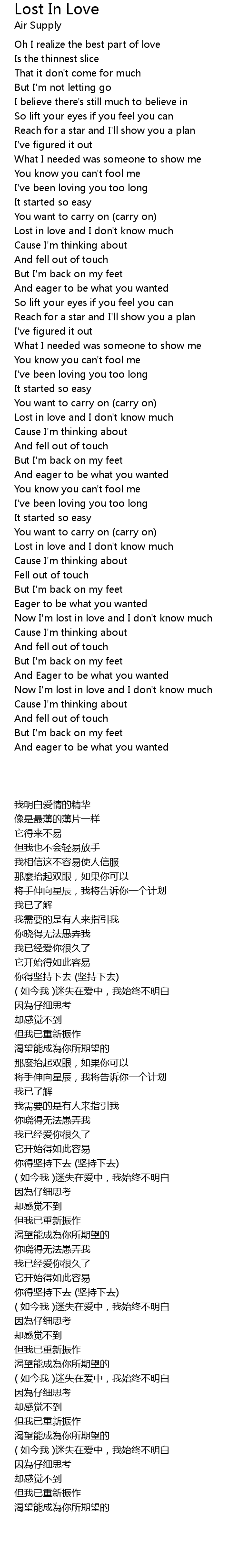 Lost In Love Lyrics