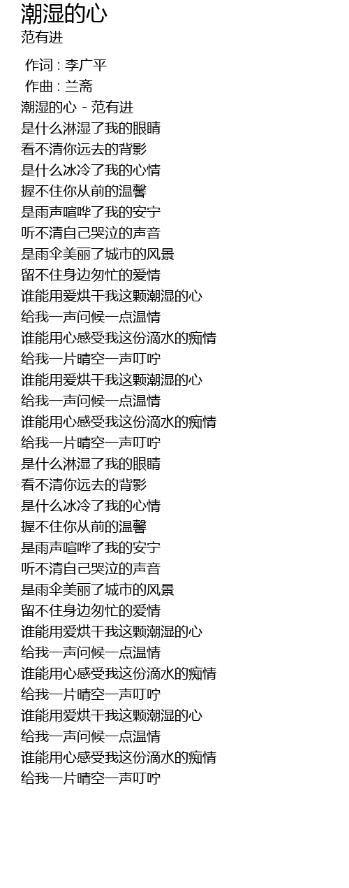 | [00:01.37] | 潮湿的心 - 范有进 |