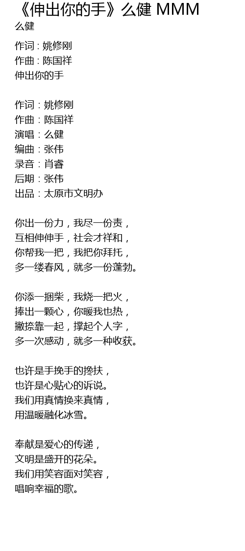 | 互相伸伸手,社会才祥和, | |