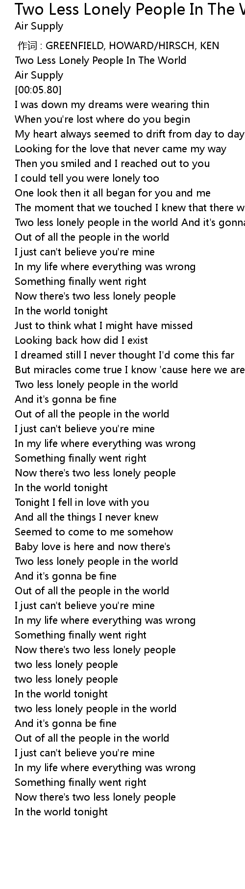| [03:22.74] | two less lonely people |