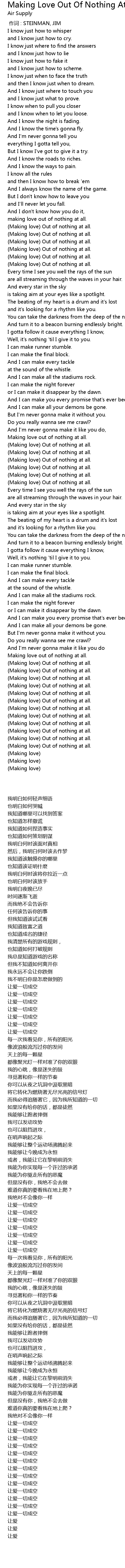 | [02:14.480] | (Making love) Out of nothing at all. |