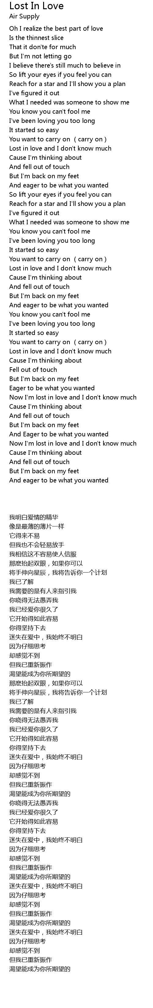| [03:36.450] | Now I' m lost in love and I don' t know much |
