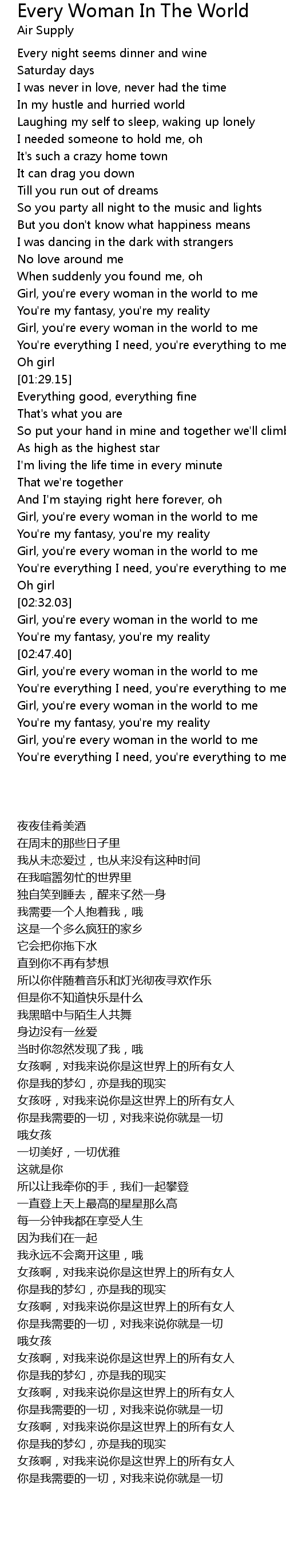 Girl, you're every woman in the world to me |