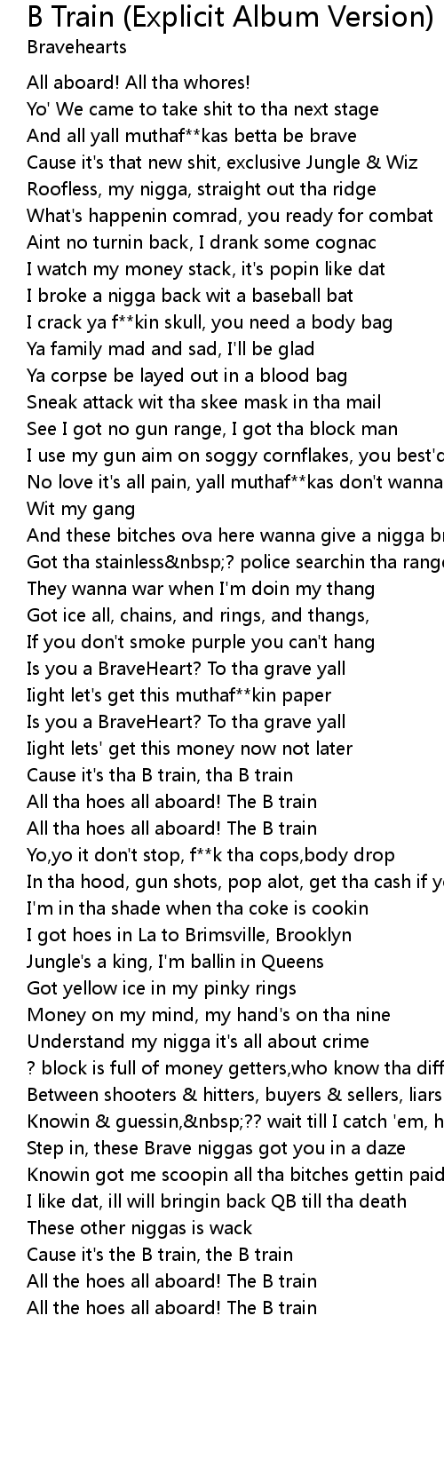 And all yall muthaf**kas betta be brave |