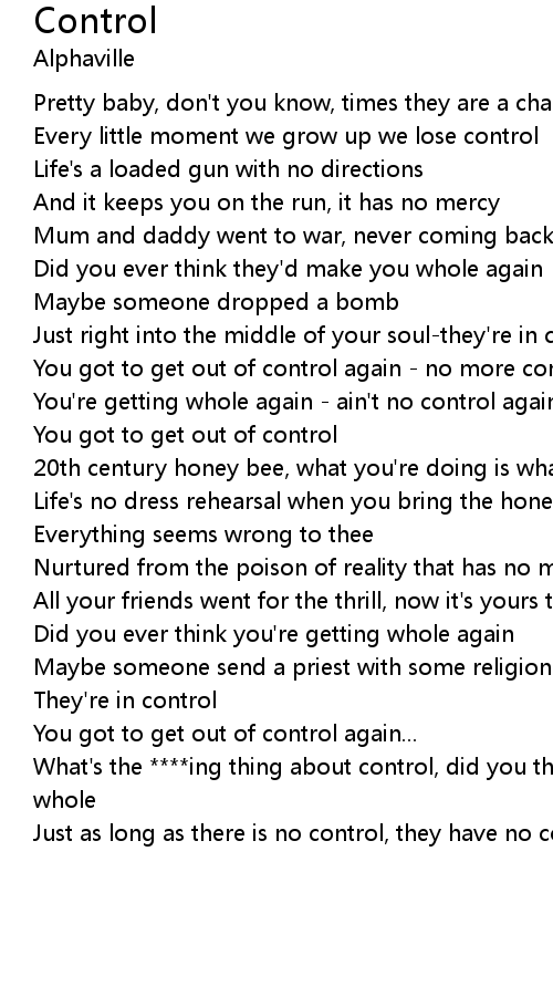 You got to get out of control again - no more control again |