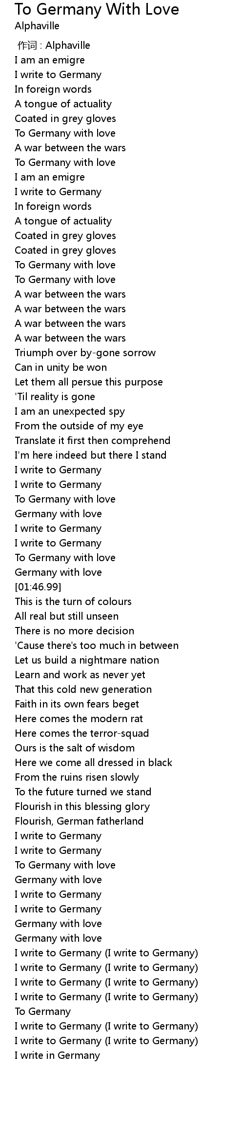 | [03:17.80] | I write to Germany (I write to Germany) |