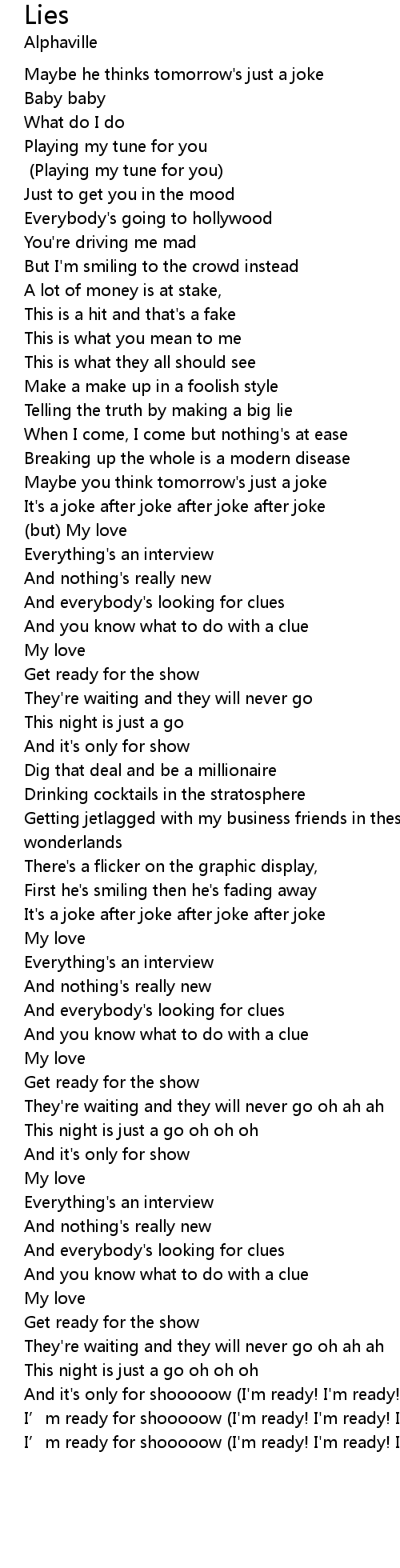 | [03:13.000] | And it's only for shooooow (I'm ready! I'm ready! I'm ready!...) |