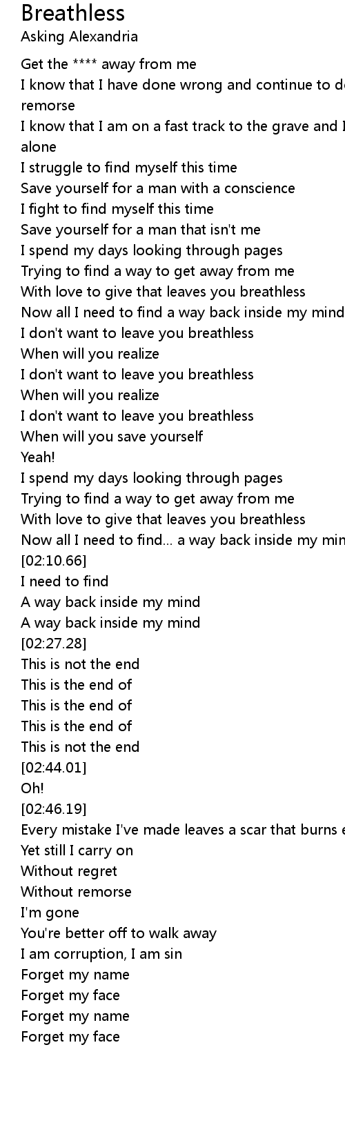 I don't want to leave you breathless |