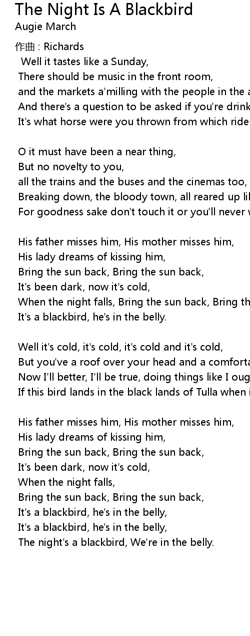 | When the night falls, Bring the sun back, Bring the sun back, | |