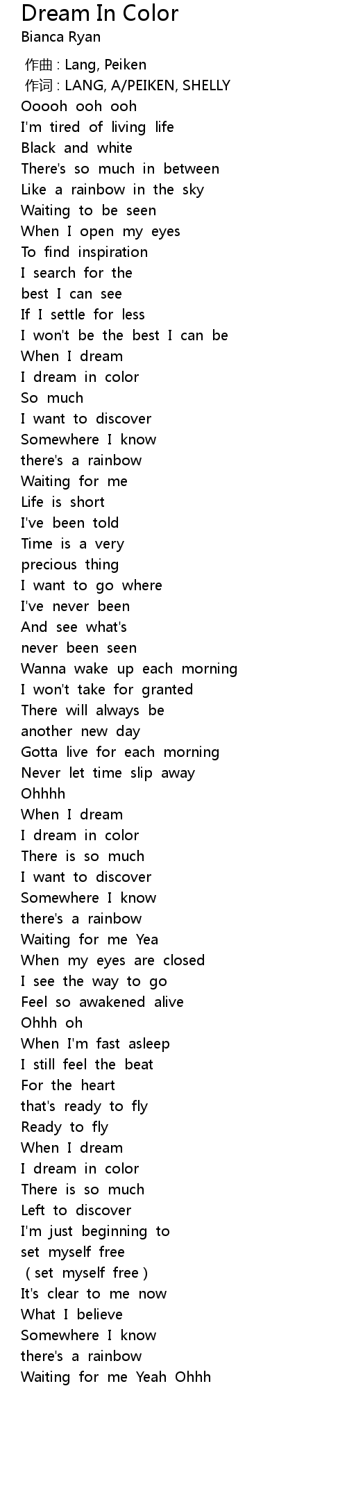 | [00:01.00] | 作词 : LANG, A/PEIKEN, SHELLY |