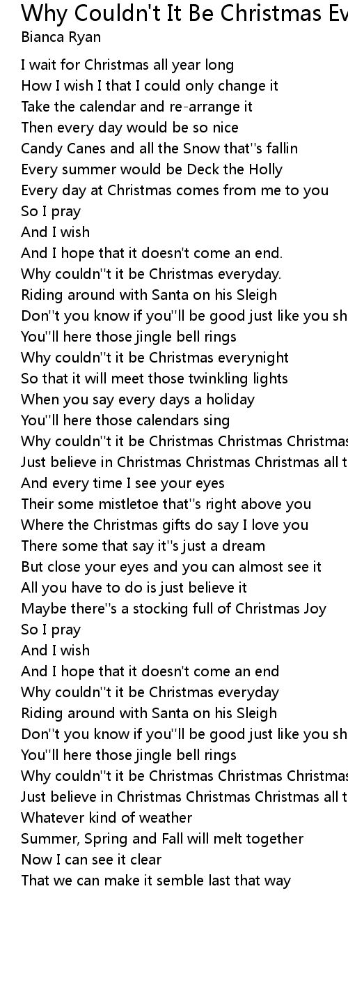 Why couldn''t it be Christmas Christmas Christmas everyday |