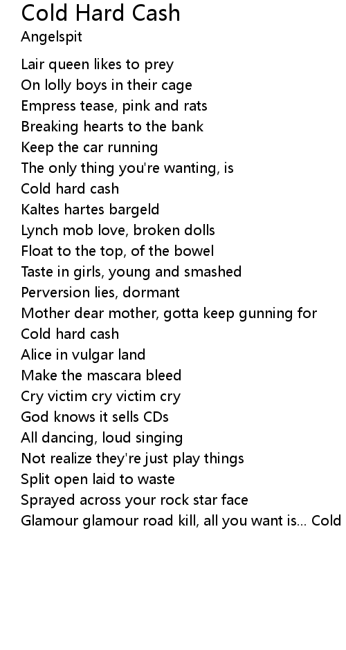 Glamour glamour road kill, all you want is... Cold hard cash |