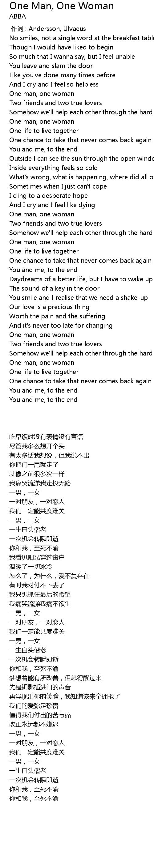| [00:43.84] | One man, one woman |